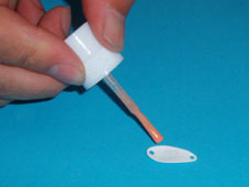 | 3.マニキュアのハケで、直接塗って下さい。 (下地が白の場合、より鮮やかに発光します。) |